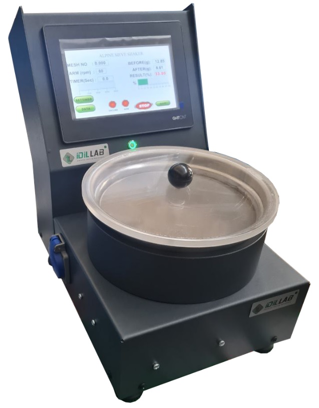 Cihaz cok ince malzemeler için dizayn edilmiş hava jet vakumlama sistemiyle kuru olarak 20 mıkron ve uzerı malzemelerı elemek ıcın kullanılır.